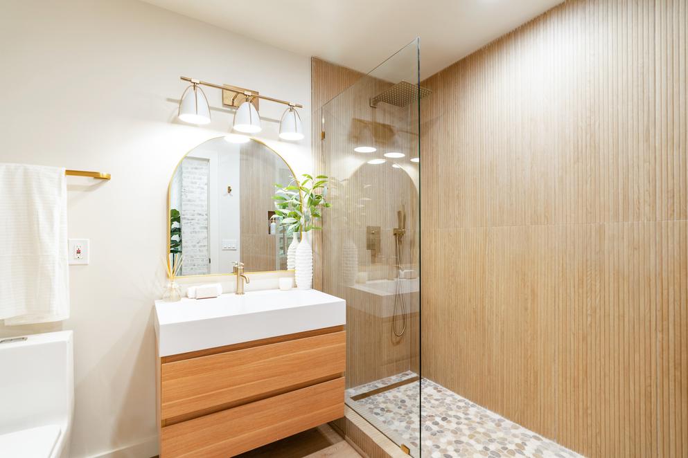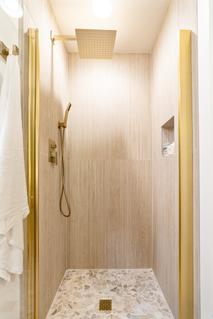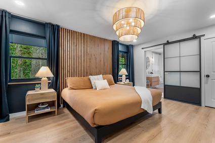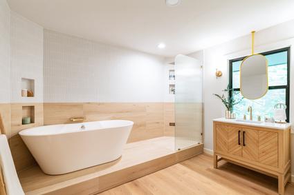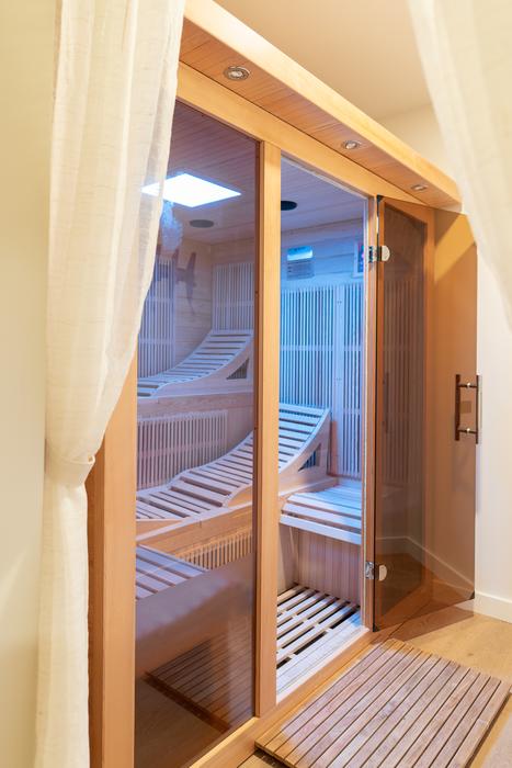 • Spa bathroom featuring soaker tub, walk-in shower & private sauna