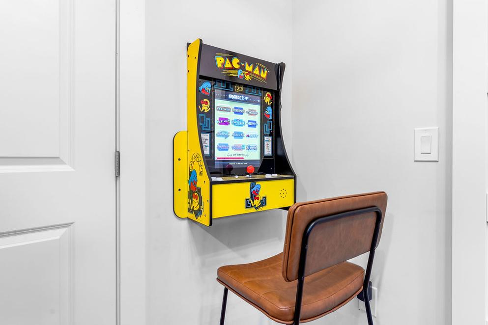 • Bunk room with full-over-full bunks + wall-mounted Pac-Man arcade